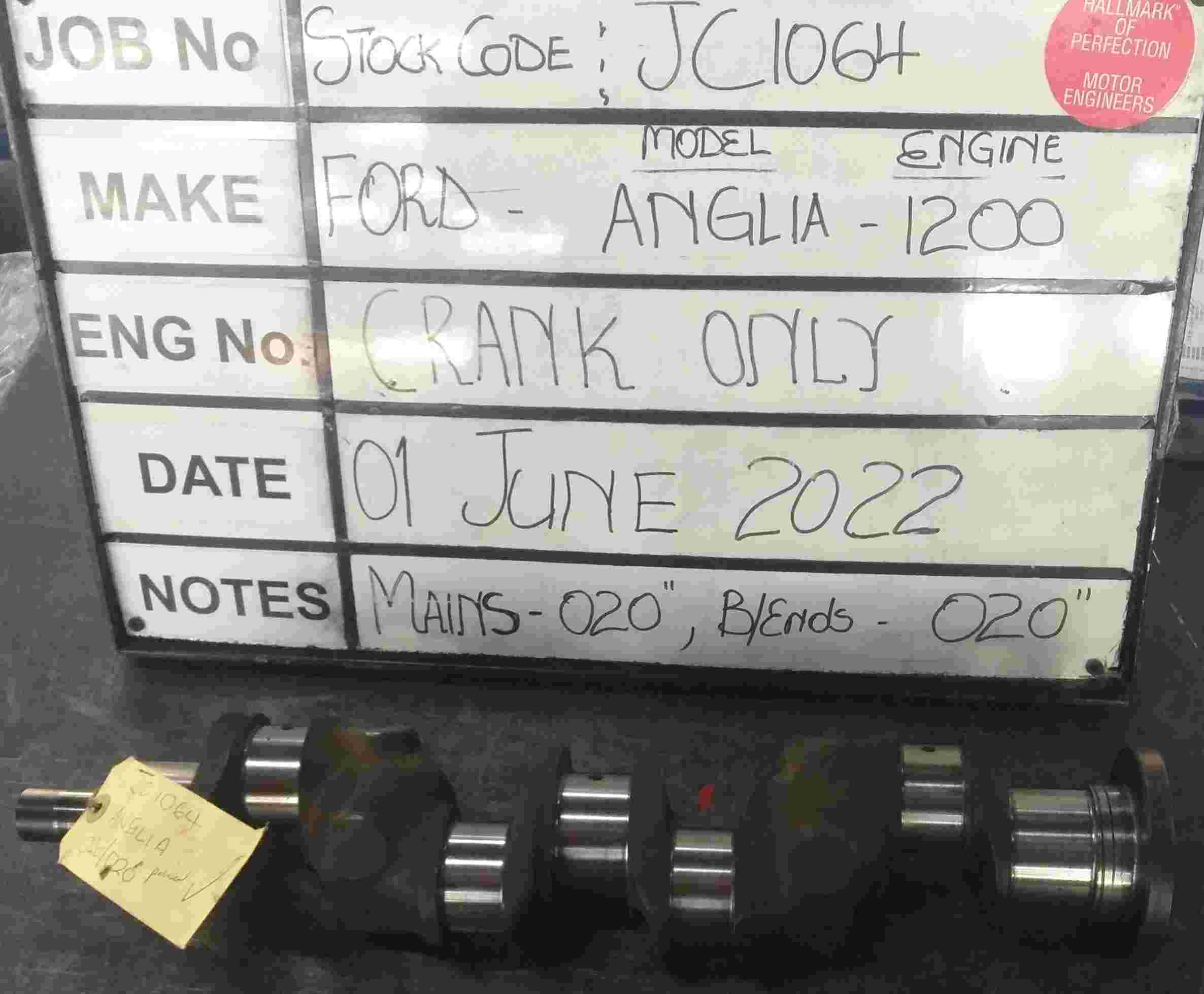Ford Anglia 1200 Crankshaft Mains 020 , B/Ends 020 Stock Code JC1064