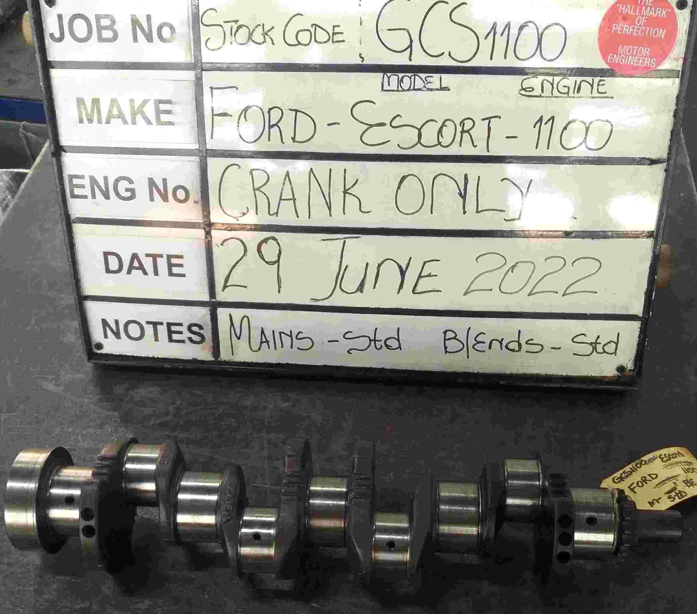 Ford Crossflow 1100 Crankshaft Mains std , B/Ends std Stock Code GCS1100